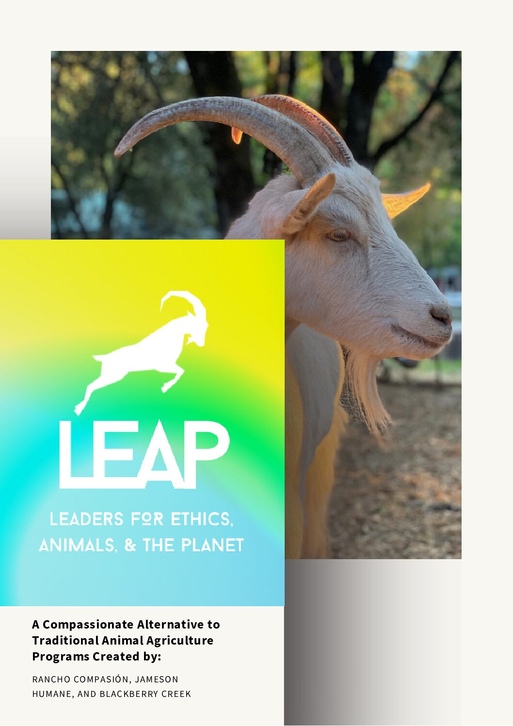 Founded by three non-profit sanctuaries in Northern California, LEAP (Leaders for Ethics, Animals, and the Planet) is the first-of its-kind humane education program to reach high school students as a compassionate alternative to traditional agricultural programs like 4H and FFA.